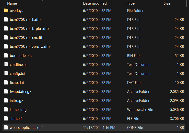 At this point, if you wish to add firewall configuration files, set a static IP for your device, or connect to the device via Bluetooth, you can find all the necessary configuration files on the GitHub page here. Once you’ve finished creating the configuration files, rename all the .txt files to .conf and copy them onto the SD card.