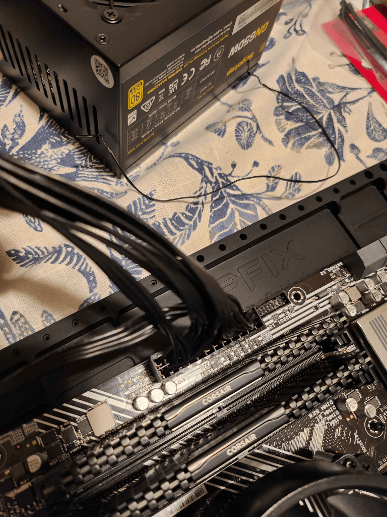 Finally, it was time to install the RAM and the PSU onto the motherboard. I started by consulting the motherboard manual to ensure I placed the RAM in the correct slots. After installing the RAM, I connected the PSU to the motherboard.